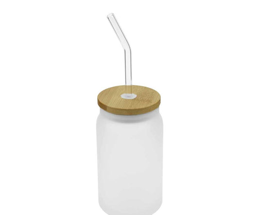 Glass Bottle with Straw and Bamboo Lid 455 ml Capacity