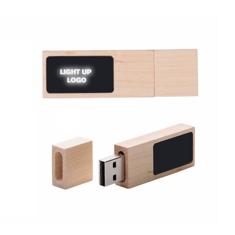 A 32GB USB 3.0 made of sustainable bamboo. Includes a lightup logo area to showcase your brand or logo in an illuminated style.