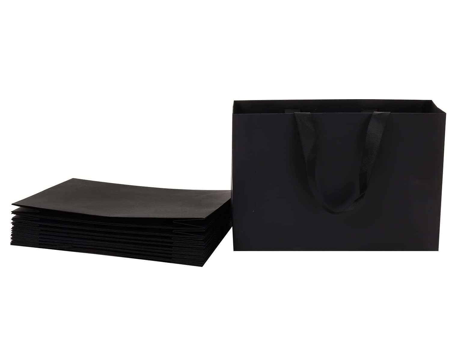 Black Plain Gift Bags Shopping Bag Party Favor Bags with Black Grossgrain Ribbon Handle for Birthday Mother’s Day, Baby Shower Bridal Shower Wedding Gift.(4 Sizes Available).