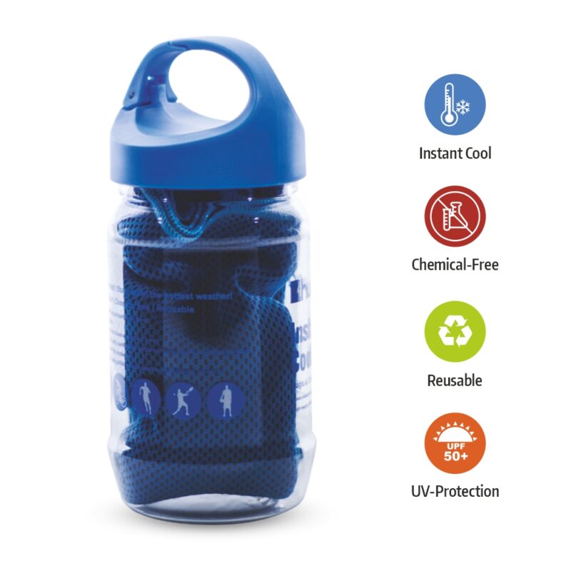 A new concept in towels, these towels are made from a cooling fabric which helps it keep you cooler than the ambient temperature.