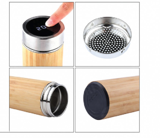 Bamboo Flask With Tea Infuser Ss Inside with Temperature Display Lid