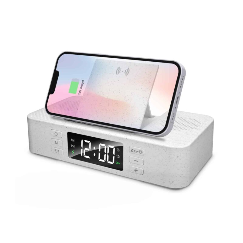 Sustainable Wireless Charger, Clock & Bluetooth Speaker