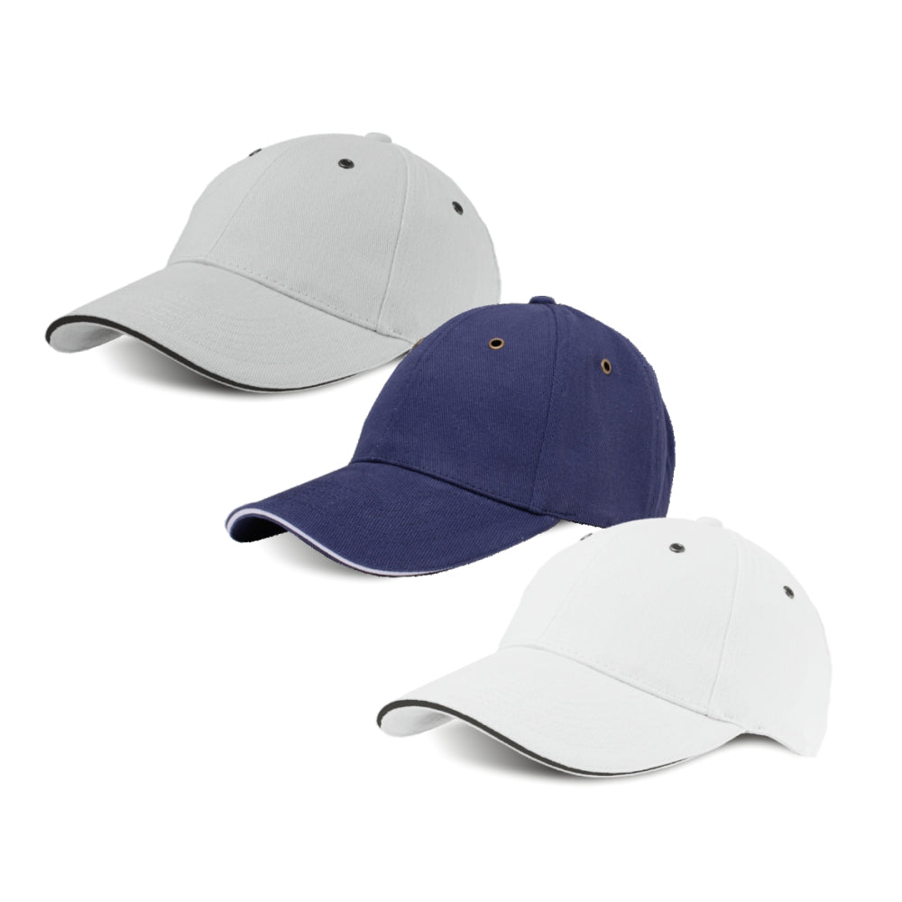 Grand slam golf top quality structured heavy brush cotton caps with contrast piping