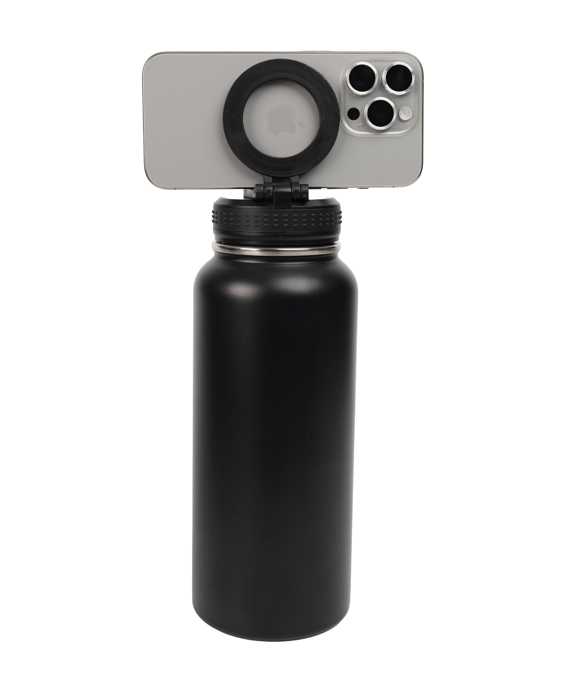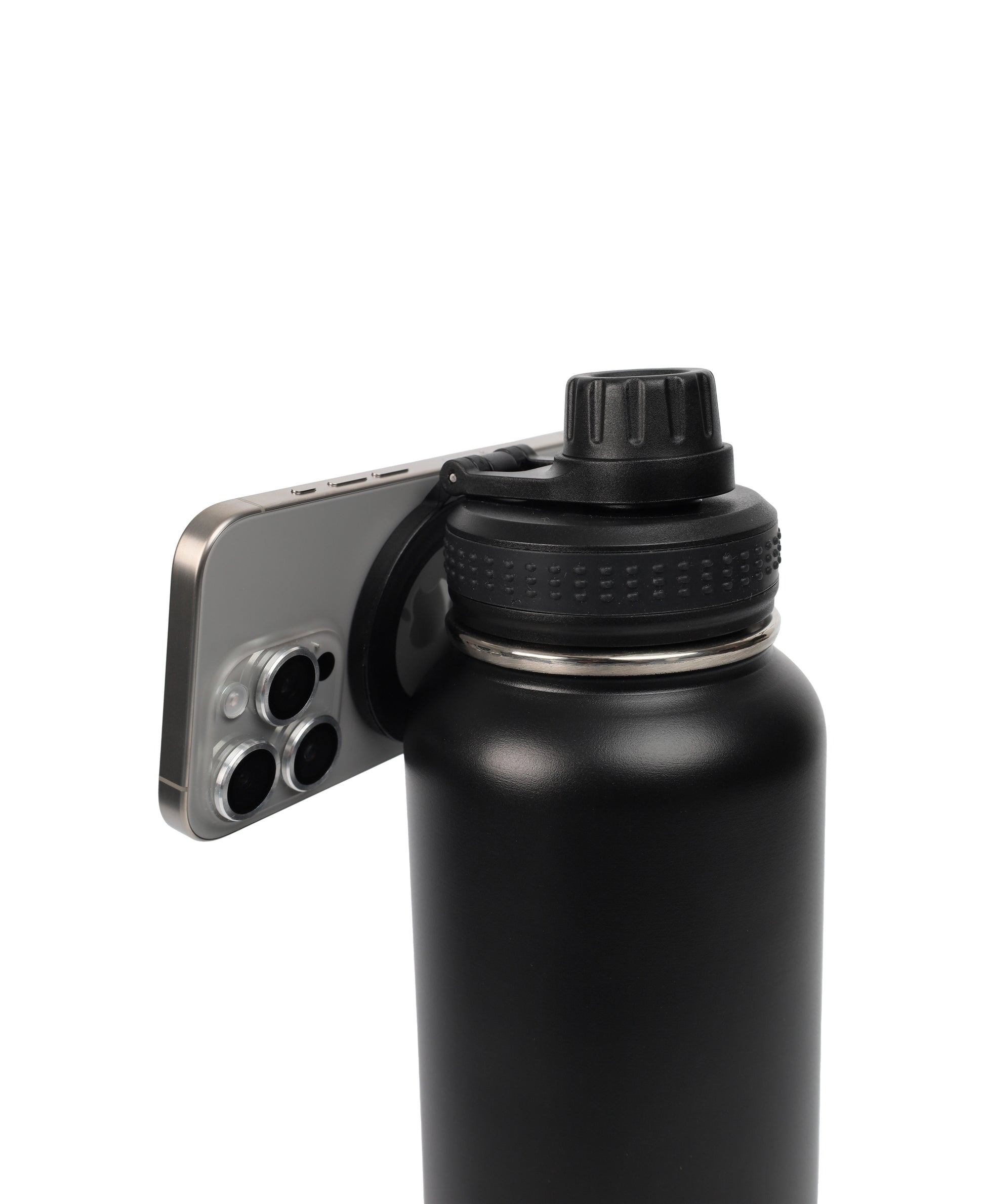 A double wall stainless steel bottle with inner SS304. This leak-proof bottle comes with a magnetic lid that acts as a phone stand or tripod.