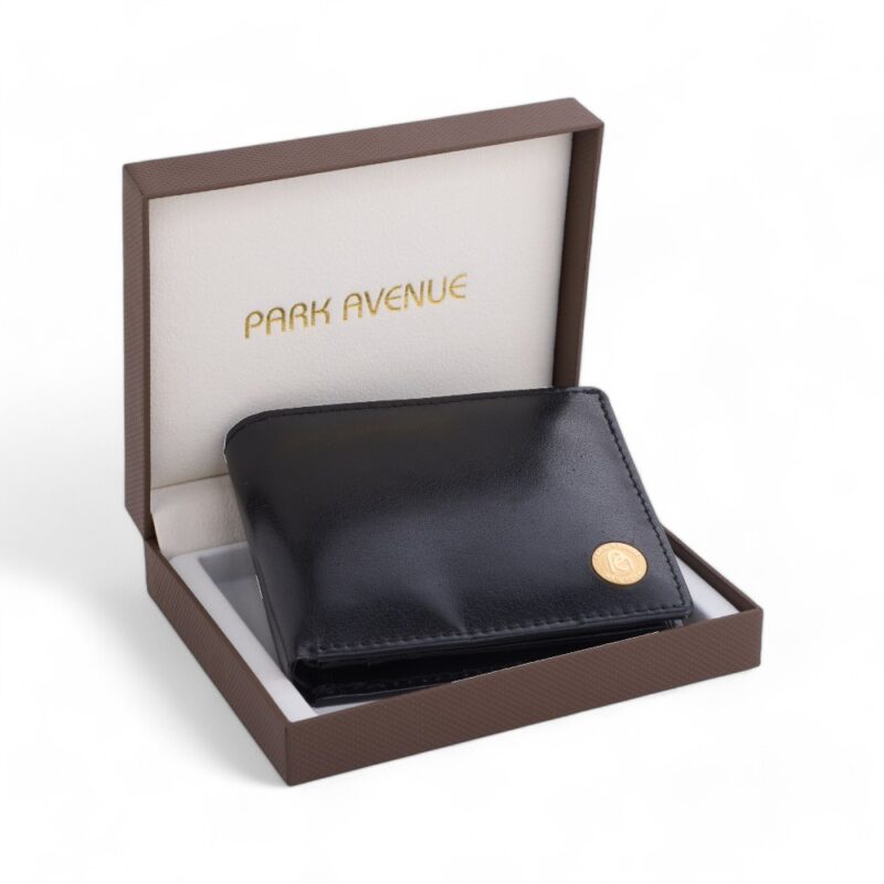 Park Avenue genuine leather dual-tone men’s wallet packed in a rich suede box.