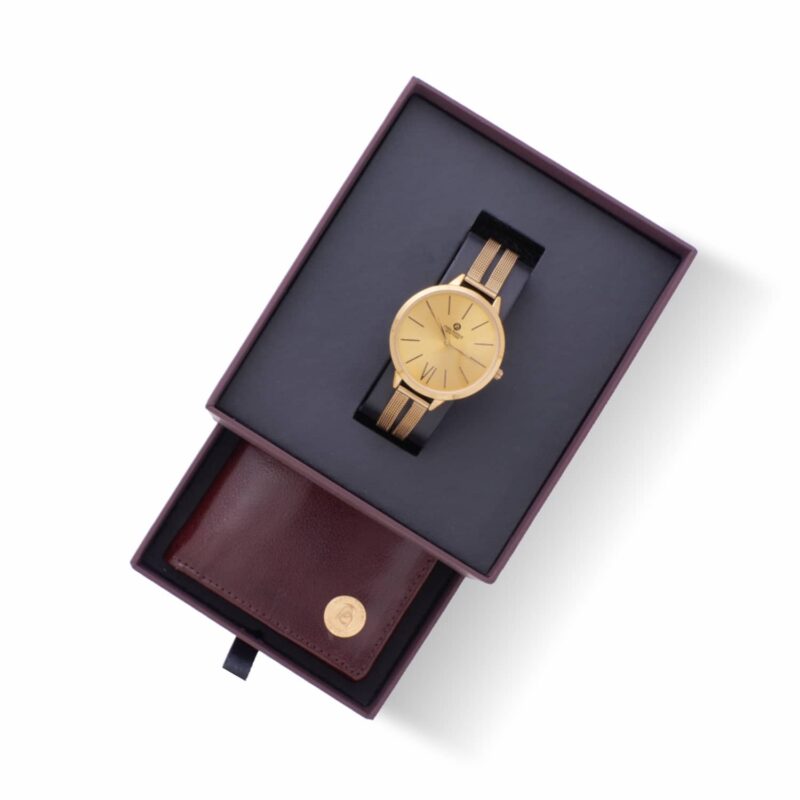 Make a statement with your gift-giving and leave a lasting impression with the Park Avenue Elegance Gift Set, a harmonious blend of sophistication and practicality. This luxurious ensemble features a Park Avenue Branded Women’s Watch and a Park Avenue Unisex Wallet with a detachable card holder, offering the perfect combination of style and functionality.